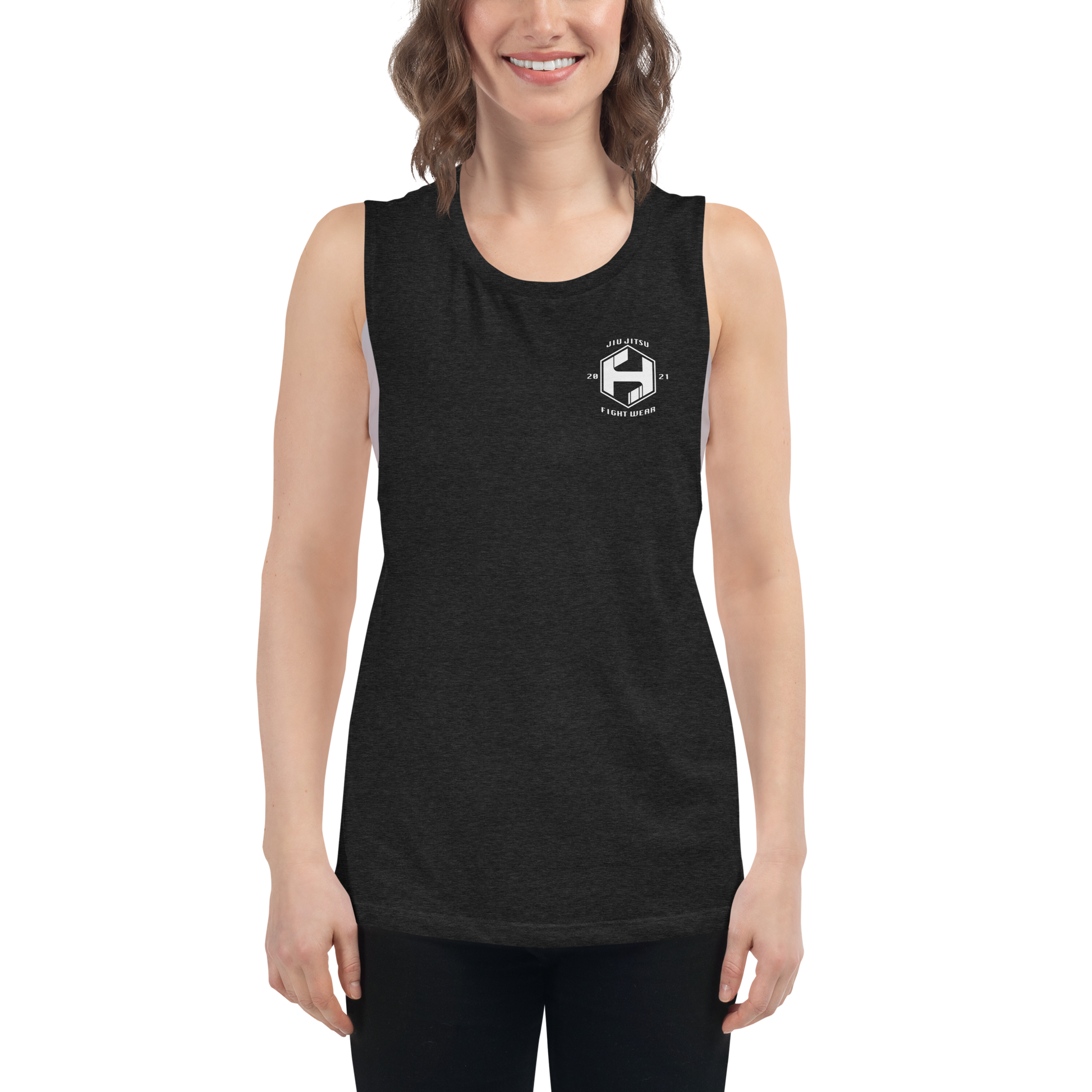 This comfortable muscle tank is soft and flowy with low cut armholes for a relaxed look.